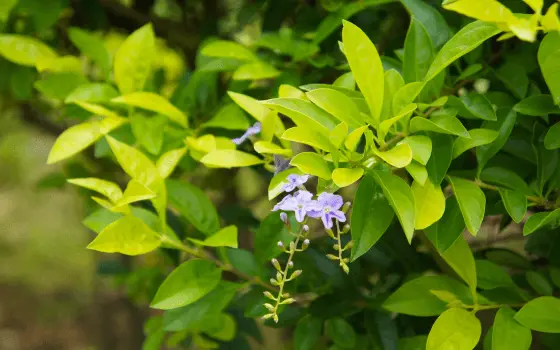 This is a large, fast-growing, multi-stemmed shrub with bright yellow/golden foliage that is an instant pop of color. The branches are often droopy & vinelike, and the stems may have sharp spines. Use it where the soil is well drained, and watering will not be necessary after planting it. Slow-release fertilizers will produce more growth, flowers, and fruit. Give it as much light as it can handle. Generally, the foliage is light green, but some cultivars have leaves with a golden yellow color, a creamy white variegated leaf edge, or a yellowish variegated pattern on the leaves. In most variants, leaves are 1-2 inches long, while the Brazilian types may have 4-inch long leaves. The plants with variegated leaves do better in places with less sun. There are two Duranta species commonly used as ornamentals. Duranta erecta is considered a native of the Florida Keys but is more likely to have been collected from Mexico or South America. This small-leaved species was previously identified as D. repens. A second species, D. stenostachya, has been called Brazilian Skyflower by some, and it has noticeably larger leaves. Both have been used to produce hybrids and many different cultivated varieties of Golden Dewdrops. This fast-growing shrub gives your surroundings an instant boost of colors thanks to its vivid golden foliage. Enhance your outdoors by purchasing now!